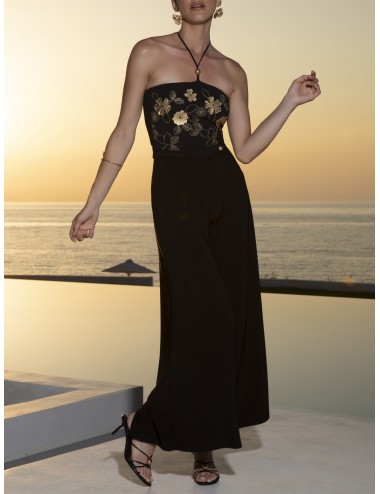Combipantalon de la collection Etoile en glam de Lise Charmel, dont le bas est en maille unie et le haut est une broderie placée avec un mélange de fil or et de matière coloris or pour les fleurs en 3D. Attache dorée sur le haut dos pour assurer un enfilage facile.