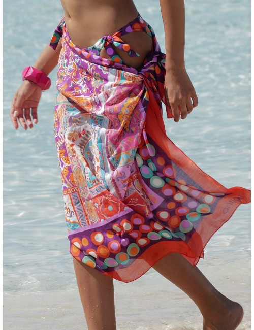 Paréo de la collection La pois disco d'Antigel, à nouer par-dessus son maillot de bain.