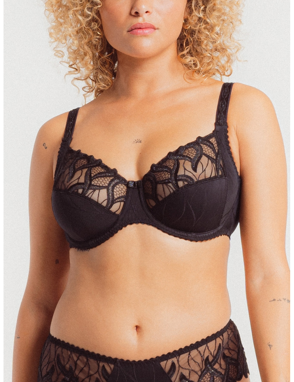 Le soutien-gorge emboîtant de la ligne Julia comprend des broderies aux courbes verticales flamboyantes, évoquant ainsi les courbes du corps féminin.