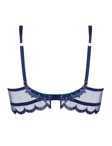 Bonnet en broderie multi-fils, festonné au décolleté, et basque en tulle élastique festonné de la collection Déesse Désirs de Lise Charmel. Bretelles spagettis avec motifs strass multicolor . Bijoux à l' entre gorge et motifs brodés en milieu dos.