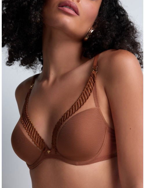 Jouant sur les contrastes entre transparence et opacité, le soutien-gorge triangle armatures Sheer Emotion allie confort et séduction dans une coupe résolument sexy. Associant un tulle transparent qui se déploie haut sur l’épaule et des coques en maille douce, il offre un décolleté profond, tout en broderie graphique très moderne.