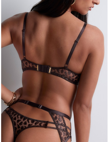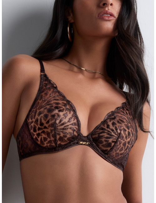 Alliant confort et séduction, le soutien-gorge triangle armatures Crazy in Love déploie sa broderie tout en jeux de transparence haut sur le buste pour un décolleté profond très sexy. À l’entregorge et sur les épaules, des détails dorés font écho à la brillance de la matière pour une silhouette envoûtante.