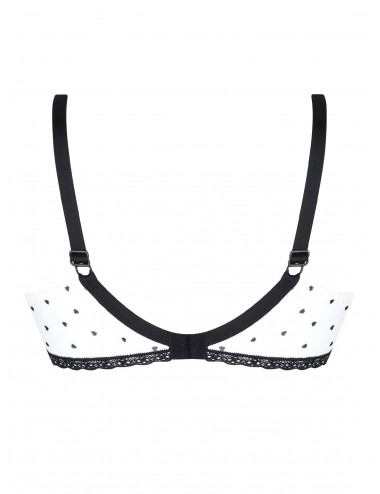 Soutien-gorge souple à armatures tout en tulle imprimé. Galon dentelle noir incrusté sur les décolletés et le bas des basques. Nœud à l'entregorge.