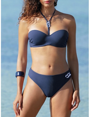 Slip en maille côtelée unie de la collection La Stricto Chic d'Antigel. Insertion d'un bijou chaine asymétrique sur le coté gauche.