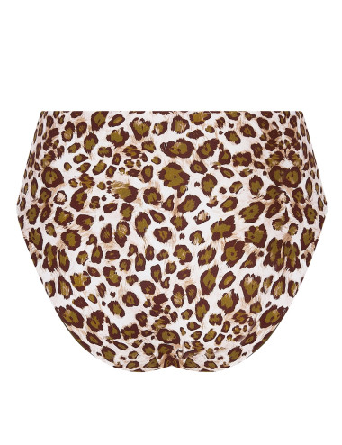 Slip très haut et réversible, un coté en maille imprimée, l'autre en maille unie de la collection La panthère mystère d'Antigel. A porter haut à la taille ou avec ceinture retournée.