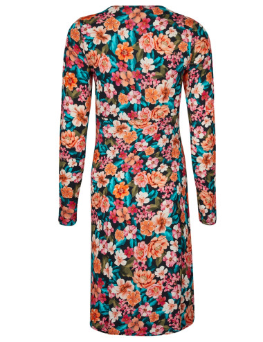Nuisette à manches longues de la collection Parfum de Kerala d'Antigel, en maille imprimée avec incrustation de dentelle sur le décolleté V devant.
