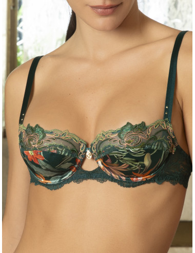 Soutien-gorge souple à armature de la collection Tropique en fleur de Lise Charmel, découpe horizontale. Porter naturel, décolleté arrondi tout en féminité.