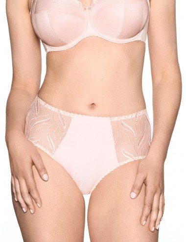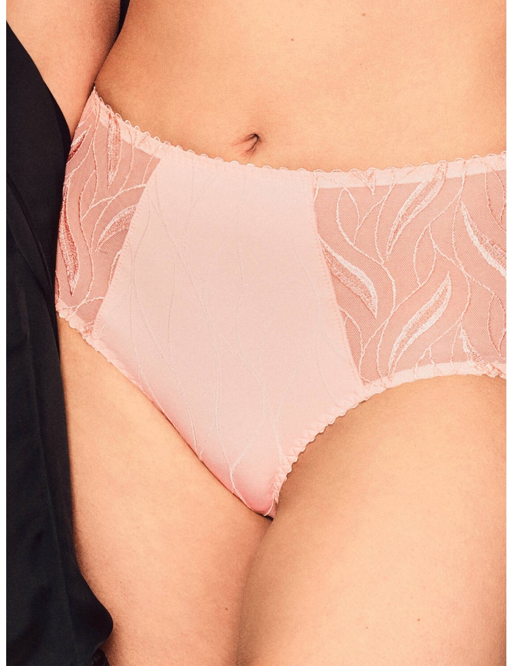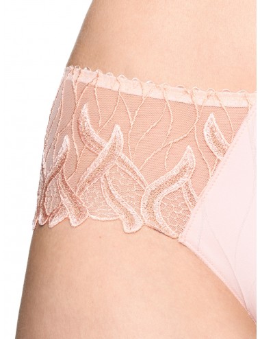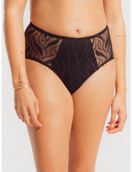 La culotte Louisa Bracq de la ligne Julia arbore sur ses larges bords des motifs « nid d’abeilles » alliés à un tulle transparent dévoilant subtilement votre peau.