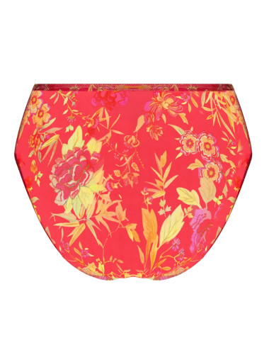 Slip haut en tulle imprimé avec une découpe élancée au devant, agrémenté de galon festonné brodé multifils aux cuisses devant de la collection Forêt Rubis de Lise Charmel.