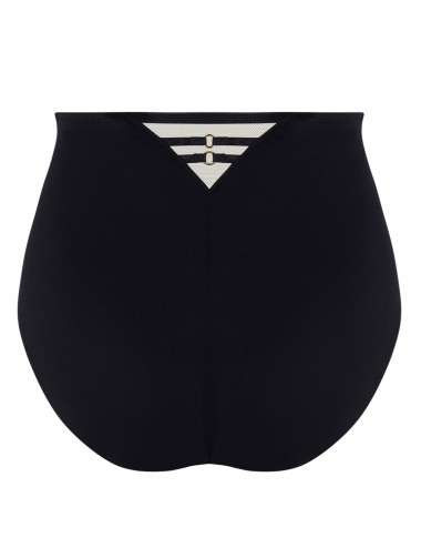 Hauteur dessus nombril. Emboîtant dans le dos et gainant sur le devant. Effet ventre plat, taille fuselée.