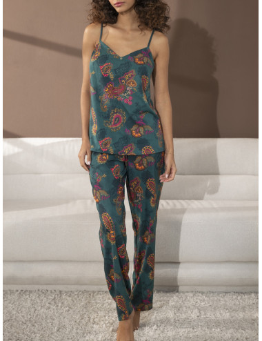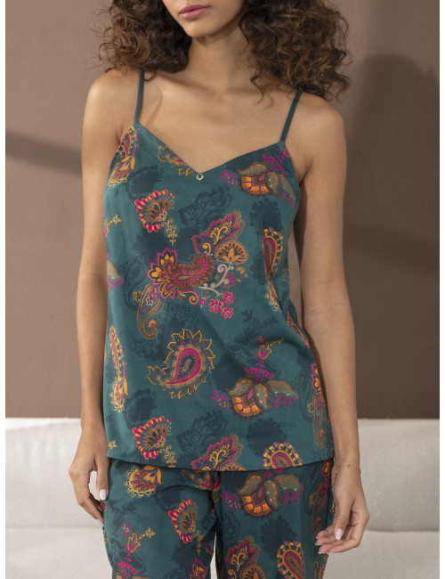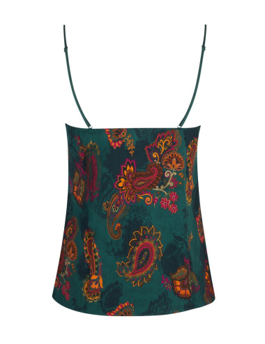 Caraco en satin de viscose imprimé. Bretelles fines réglables.