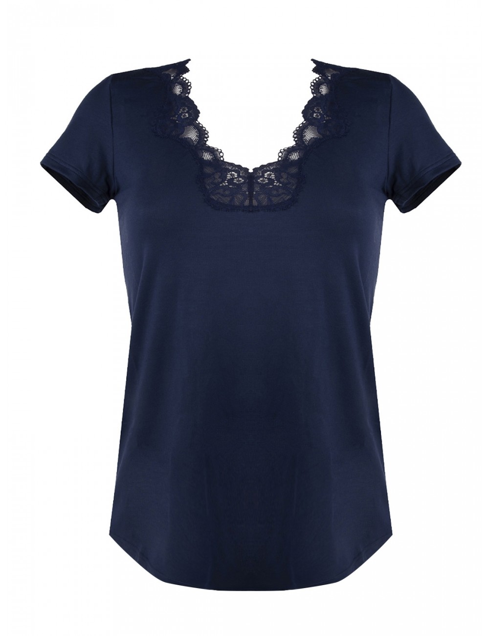 Tee-shirt en modal. Décolleté devant en galon de dentelle.