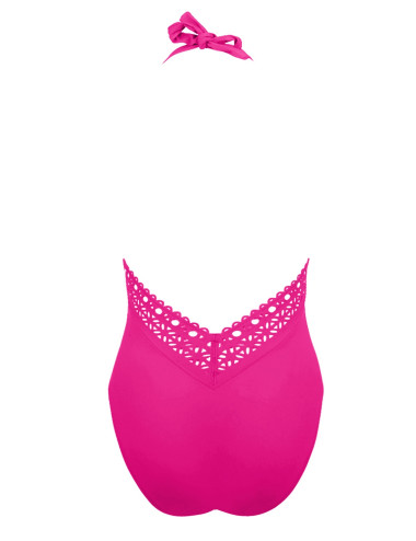 Nageur en maille unie avec bande ajourée au décolleté dos et emmanchure devant de la collection Ajourage Couture de Lise Charmel. A nouer tour de cou .