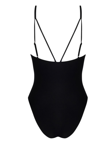 Nageur en maille unie. Décolleté agrémenté d'un collier or effet jonc. Bretelles fines à double et réglables. Bonnets doublés. Elastique sous poitrine.
