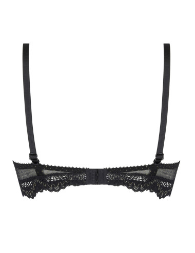 Soutien-gorge à coques de la collection Nuit des étoiles d'Antigel, en tulle pailleté avec incrustation d'une dentelle festonnée sur les bas de basque. Bijou strassé à l'entregorge.