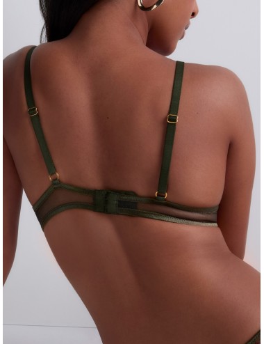 Galbant et soulignant la poitrine de sa broderie élégante aux fils irisés, le soutien-gorge plunge coque Sound of Heart offre un effet push-up naturel confortable et sexy. Moderne, il présente un décolleté dont la profondeur est accentuée par l’écaille droite qui l’encadre et le bijou doré martelé qui illumine l’entregorge.