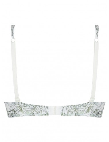 Soutien-gorge coques à armatures tout en maille imprimée de la collection Echappée green d'Antigel. Bretelles devant en spaguettis recouverts de la maille imprimée. Bijou perlé à l'entregorge.
