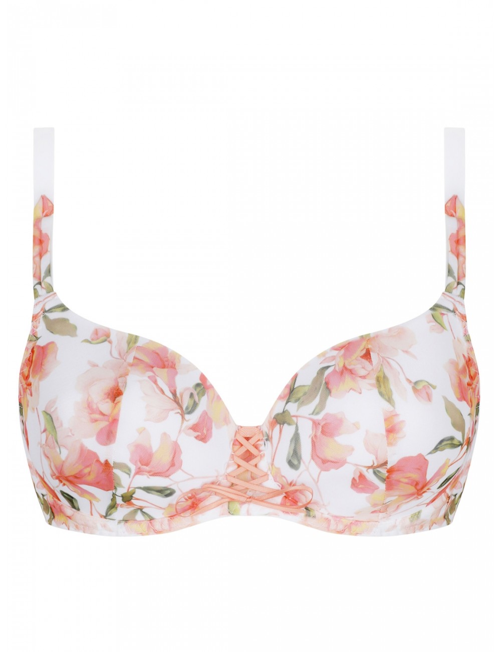 Soutien-gorge coque light à armature de la collection Roses gourmandes d'Antigel. Poitrine galbée et arrondie.