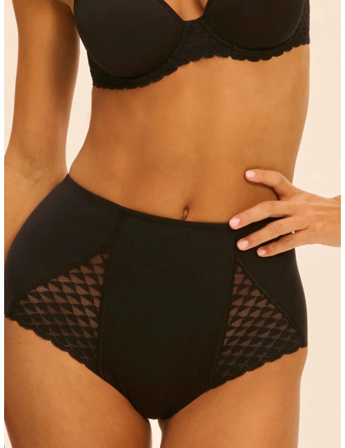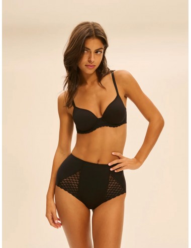Ligne technique et féminine Subtile de Simone Pérèle, qui mixe maille gainante et dentelle française nerveuse. La silhouette est sculptée, les courbes redessinées. Fonctionnelle et moderne.