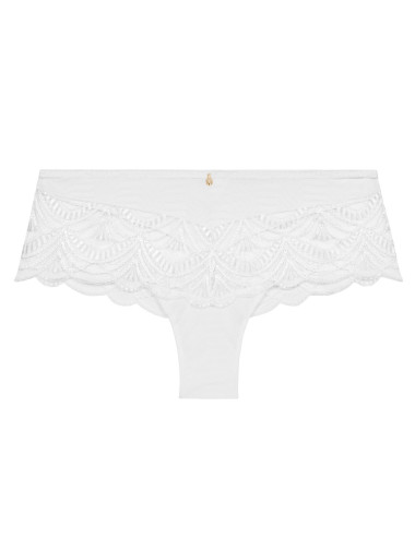 Offrant une forme résolument moderne, le shorty Vibes se porte taille basse pour une sensation de confort incomparable au quotidien. Tout en transparence, sa broderie graphique habille les hanches, galbe légèrement le ventre et rehausse, derrière, le galbe des fesses, surmonté par une petite ouverture sexy sur les reins.