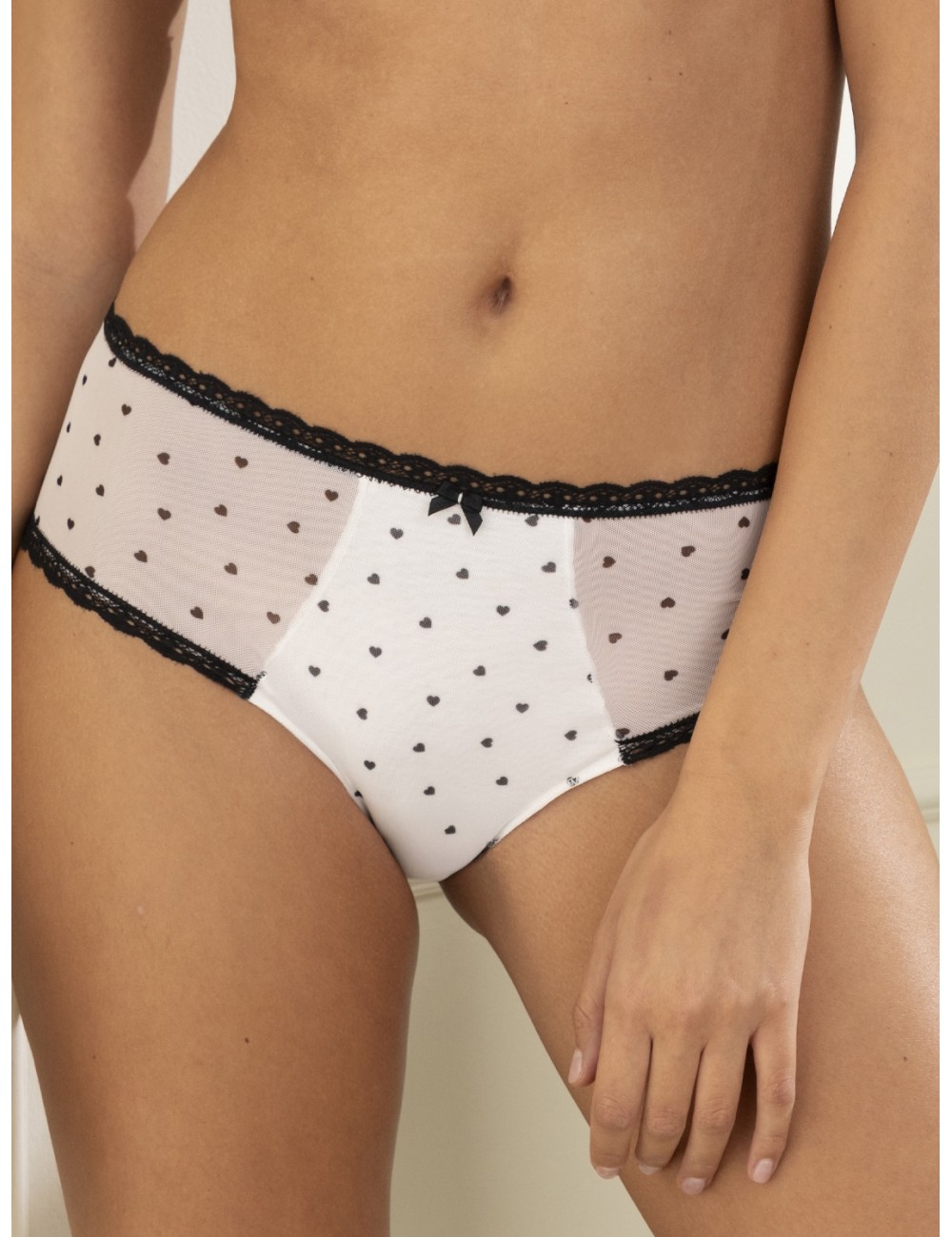 Forme taille basse séduction de la collection Coeur de rockeuse d'Antigel. Découvre légèrement la fesse et emboîte subtilement les côtés.