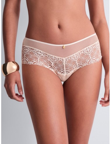 Le shorty de la collection Iconic Calypso d'Aubade, habille les courbes d’un sable lumineux et sophistiqué. Sa coupe moderne souligne les hanches tandis que la broderie graphique apporte relief et caractère. Confortable et enveloppant, il offre une couvrance rassurante tout en conservant une dimension résolument sensuelle grâce à ses jeux de transparence.