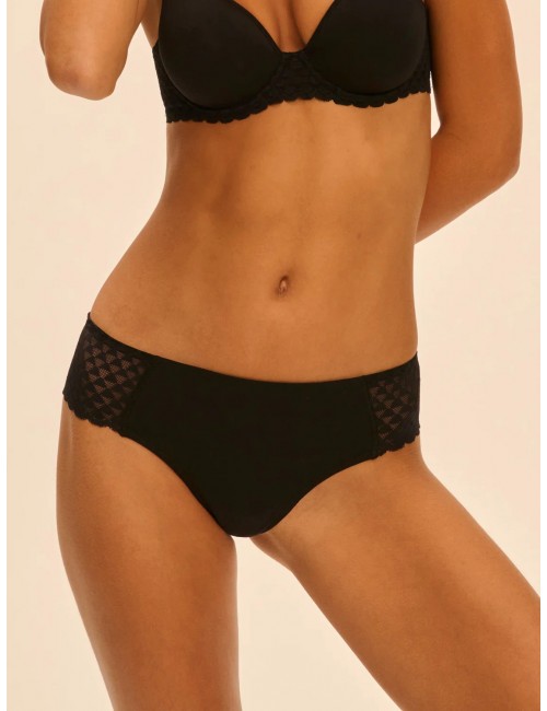 • Dos tout en dentelle avec festons sur le galbe des fesses pour un porter invisible sous le vêtement.