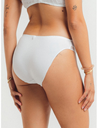 L'avant est doublé de coton garantissant un excellent confort, la taille est sublimée par un galon ajouré ainsi que des petits picots fantaisie.