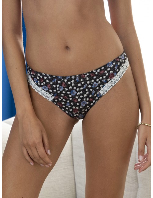 Slip en maille imprimée de la collection Liberty d'hiver d'Antigel. Galon dentelle nacre incrusté sur les côtés devant.