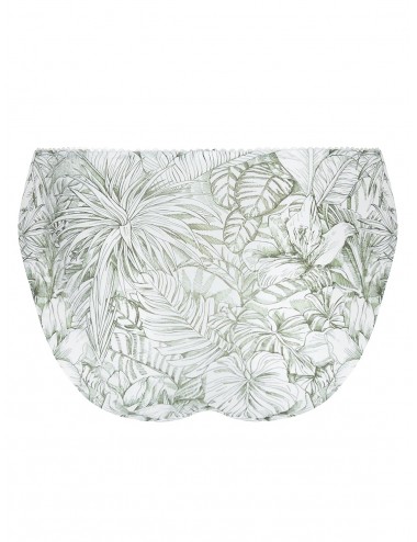 Slip en maille imprimée de la collection Echappée green d'Antigel. Galon dentelle nacre incrusté sur les côtés devant. Elastique fantaisie à la taille.