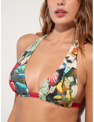 Pour mettre en valeur toutes les silhouettes en leur offrant un confort total, CRISSY est un triangle doté de coques amovibles et d’un triple cordon sous la poitrine qui s’ajuste en le nouant dans le dos. Les coutures plissées sur les bonnets donnent du galbe à la poitrine. L’imprimé Flower, une nature exubérante où les fleurs aux couleurs chatoyantes incarnent l’esprit Flower Power. Une invitation à embrasser la vie…